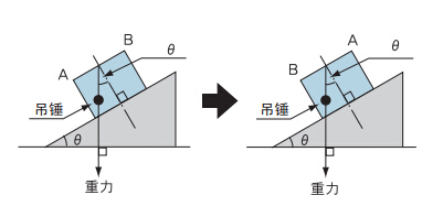 對(duì)于水平面的傾斜角度為θ。在此斜面上放一塊有吊錘的板。這樣斜面到直角的延長(zhǎng)線與板的 A 側(cè)只有θ吊錘傾斜角度。將板調(diào)轉(zhuǎn) 180°, 斜面到直角延長(zhǎng)線與板的 B 側(cè)只有θ吊錘傾斜角度。因此即使沒(méi)有絕對(duì)的基準(zhǔn)(斜面與直角的延長(zhǎng)線),倒轉(zhuǎn) 180°角度便可得出 2× θ。 2× θ的一半便是θ,也可得出水平面。得出水平后假設(shè)為 0, 正因?yàn)槿绱说艮D(zhuǎn) 180°時(shí)可以表示出實(shí)際傾斜角的 2 倍。表示的 2 陪的值的 一半便是傾斜角度,通過(guò)調(diào)整(斜面)被測(cè)量物將表示的一般的值變成 0,就成為水平。相反,有可能使用了原本有絕對(duì)基準(zhǔn)的物體,因 為什么原因未能發(fā)現(xiàn)它有故障而誤用。