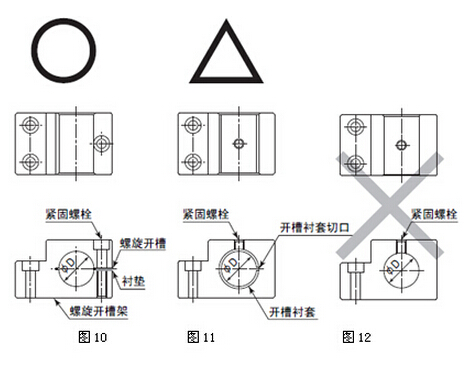 2,有關(guān)安裝支架上時(shí),如圖-10所示建議使用螺旋開(kāi)槽支架安裝方法。安裝方法請(qǐng)參照“③螺旋開(kāi)槽支架的制作方法”。如果圖-10的方法不能安裝時(shí),請(qǐng)按照?qǐng)D-11的方法進(jìn)行安裝。