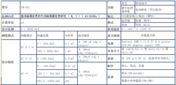 除了TM-701高斯計(jì)、TM-601高斯計(jì)的原有功能外,新機(jī)TM-801高斯計(jì)具有新的輸出功能、充電接口、USB接口。