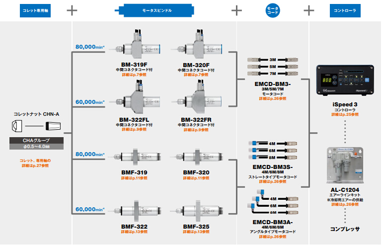 | BM-320F | Φ20mm | 80,000 min-1 | 1μm以內(nèi) | 140W | 270g |