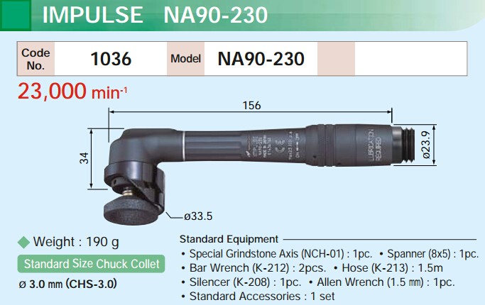 • NA90-230氣動打磨筆,具有高精度,高轉(zhuǎn)速等特點(diǎn)。