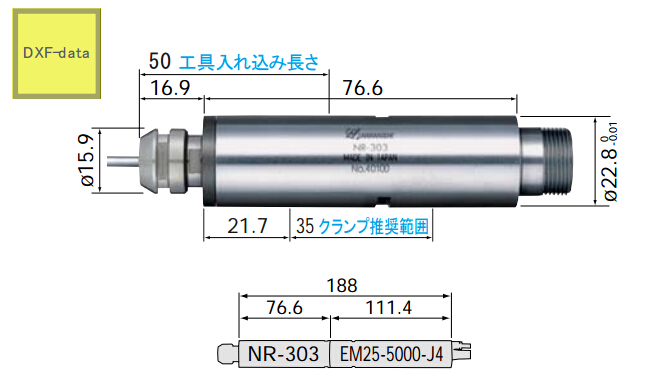 NR-303  | Φ22.8mm  | 30,000 min-1  | 2μm以內(nèi)  | 夾頭(CHK系列) : ?0.5~?6.0mm  | 215g  |