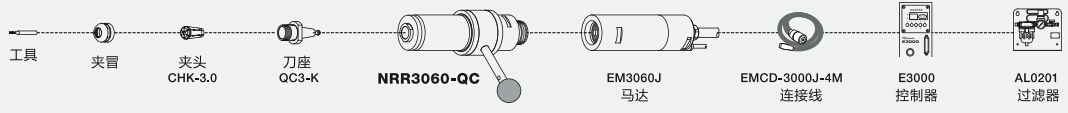 中西NAKANISHI手動快速換刀詛咒NRR3060-QC需要與無碳刷馬達EM-3060J+電源連接線,E3000控制器+空氣過濾器