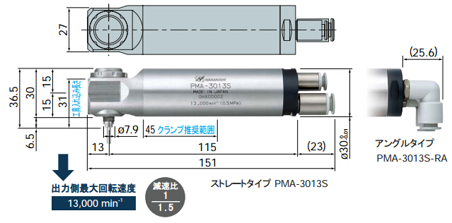 PMA-3013S-RA  | Φ30mm  | 13,000 min-1  | 3μm以?xún)?nèi)  | 130W  | 42cN.m  | 520g  |